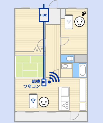 - 宅内のLAN配線は親機の一箇所でOK